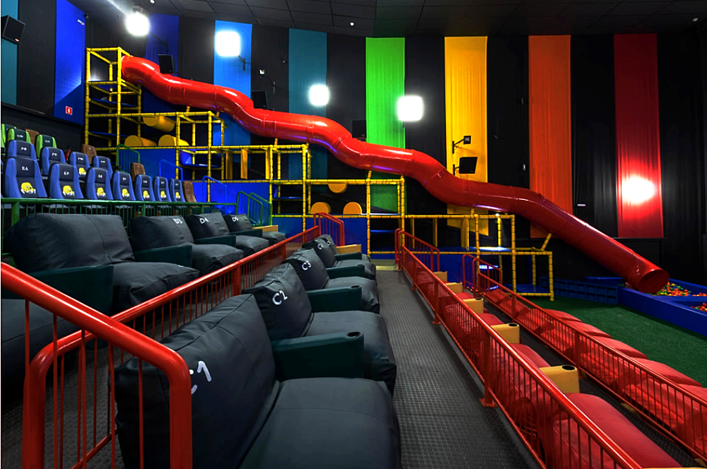 A nova sala tem tobogã com mais de 15 metros de extensão, piscina de bolinhas, área de jogos, carrinho de doces móvel, servidos dentro da sala e poltronas divertidas, compostas por 12 puffs zen, 20 puffs duplos, 08 espreguiçadeiras (espécie de cama dupla super confortável) e 47 poltronas no formato stadium (poltronas convencionais individuais), totalizando 87 lugares e ainda mais três vagas para cadeirantes.