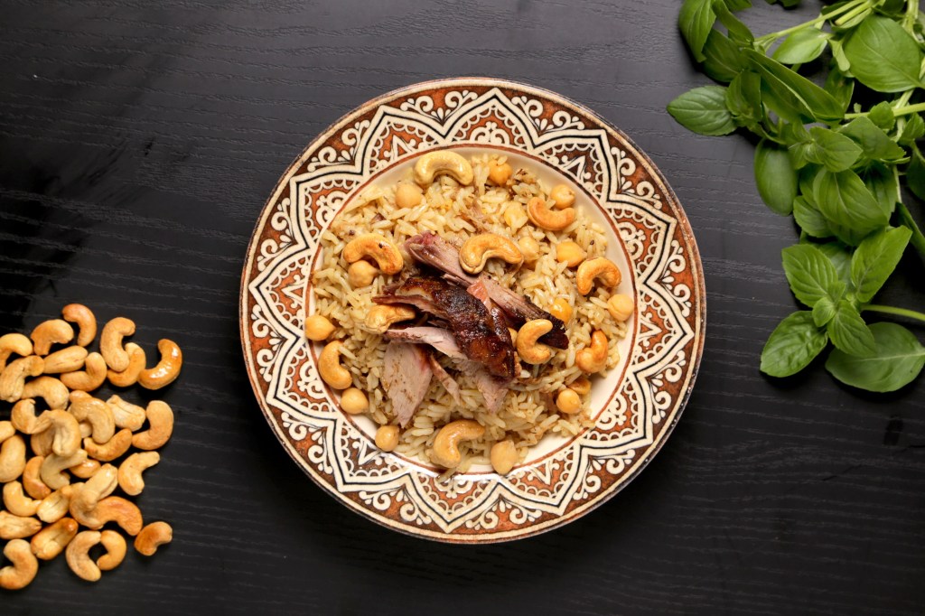 A restauranteur Vaneska Berçani, criou o arroz com grão de bico, castanha de caju e pernil marinado de cordeiro e especiarias (anis estrelado, canela em pau, cardamomo, cascas de limão e laranja, salsa e coentro).