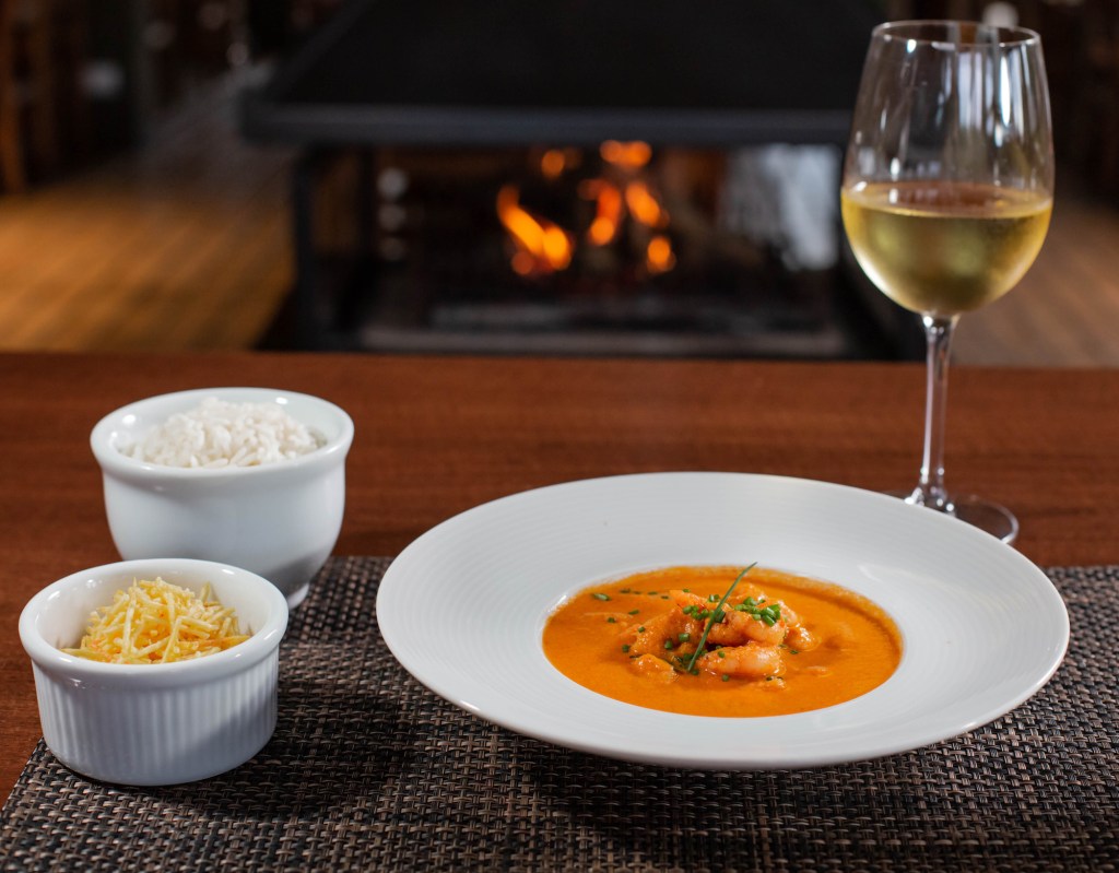 No cardápio, duas opções de antepasto: Patê de tomate seco e alecrim ou Manteiga de limão siciliano (ambos seguem a mesa acompanhados por torradas). Como opções de entradas: Creme de palmito ou Queijo de búfala, Tomate assado com rúcula e azeite de oliva. Prato principal: Estrogonofe de camarão, arroz e palha de mandioca ou Mignon com molho de cogumelos Paris e arroz piamontese coberto com rúcula. Para finalizar: Fondue de doce de leite com frutas (morangos e uvas).