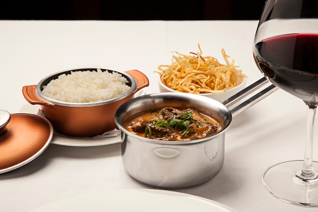 A porção é individual e, diferente dos outros pratos do restaurante, o Strogonoff vem à mesa em uma charmosa ‘panelinha’ para que o cliente possa montar seu prato como preferir. O valor é de R$65,00 (que inclui ainda uma entrada e uma sobremesa à escolha do cliente).