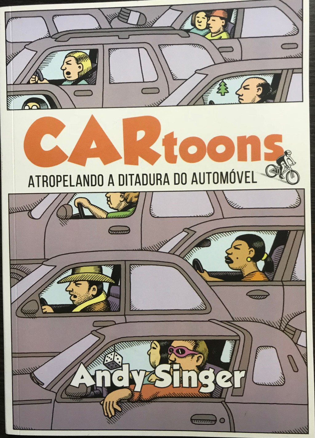 O livro “Car toons” é uma análise crítica e bem-humorada de como o planeta vem sendo moldado para o uso de automóveis, com o ser humano asfaltando e atropelando tudo no caminho em uma rota sem saída de consumo exagerado e desperdício.