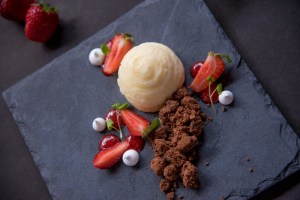 blogmadapereira 03/12/2018 Creme cheesecake, gel de morango, cookies de cacau, suspiros de merengue italiano e morangos frescos_GastroNight 04-12-18