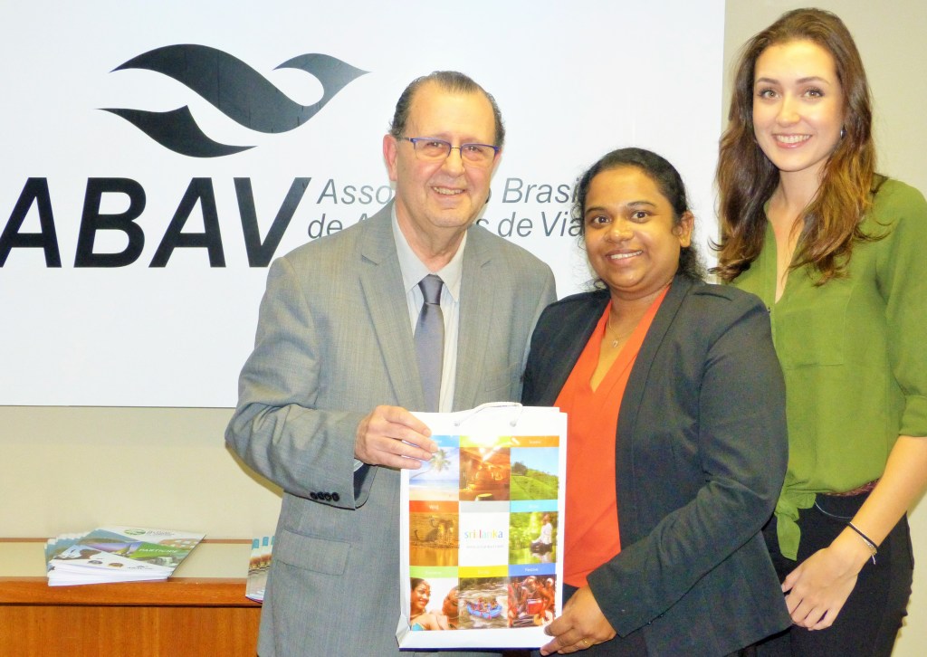 O presidente Associação Brasileira das Agências de Viagens do Paraná, Antonio Azevedo, recebeu a primeira secretária comercial da Embaixada do Siri Lanka, Seevali Wijewantha, acompanhada de Isadora Ribeiro, do consulado de Brasília.