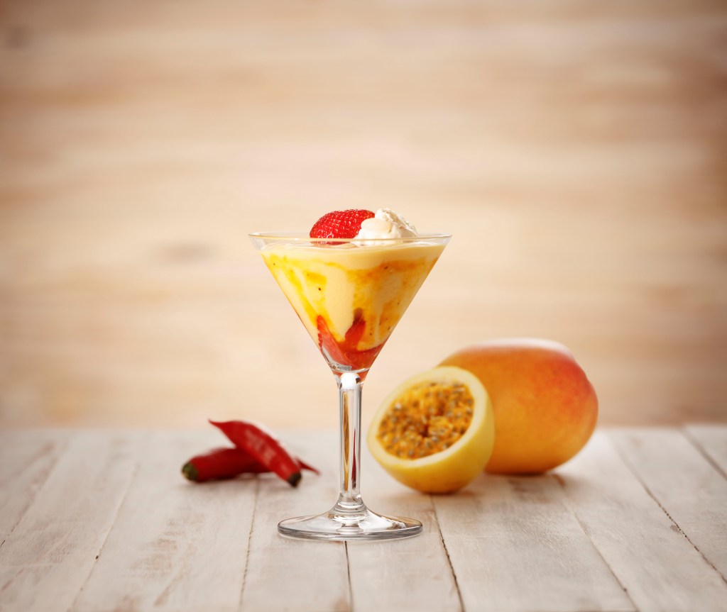 A novidade tem textura cremosa, resultado da combinação de cremes de manga, maracujá e amêndoas, com um leve toque de pimenta caiena.