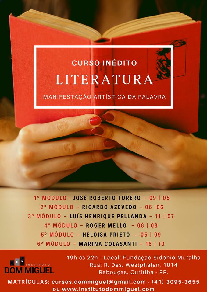 Começa em 9 de maio o curso de extensão “Literatura – Manifestação artística da palavra”, promovido pelo Instituto Dom Miguel, que trará a Curitiba grandes nomes da literatura contemporânea brasileira.