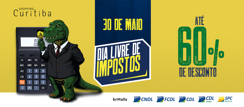 No dia 30 de maio, os produtos com descontos referentes a carga tributária serão encontrados em 13 shoppings da brMalls, em 12 cidades de 6 estados, incluindo o Shopping Curitiba.