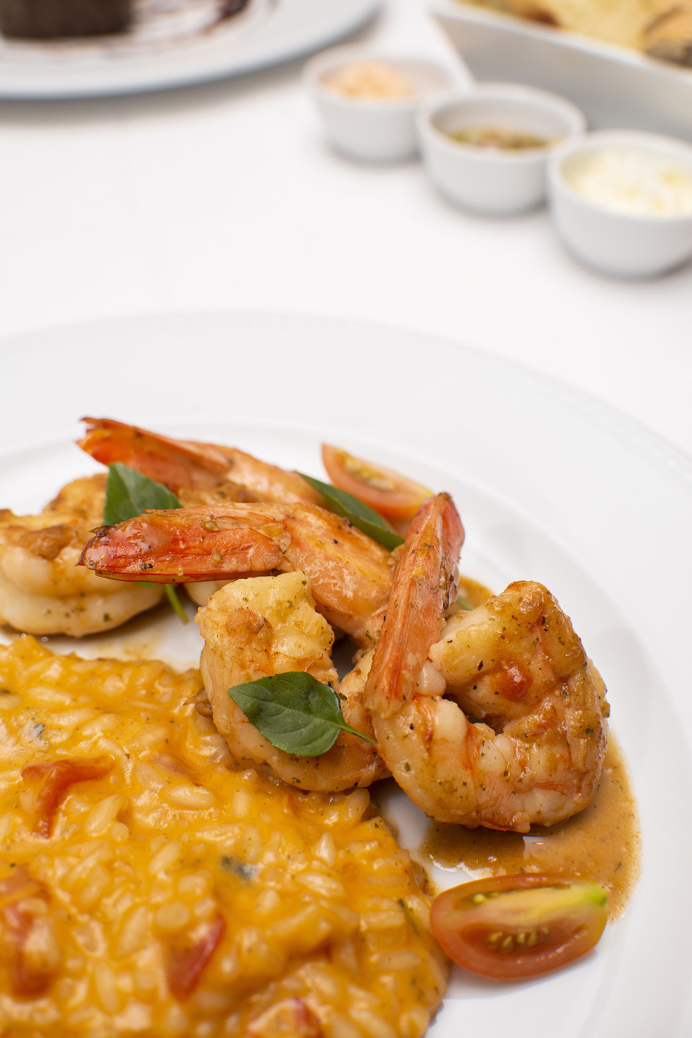 Camarões grelhados com risoto de camarão ao pomodoro basilico_La Varenne