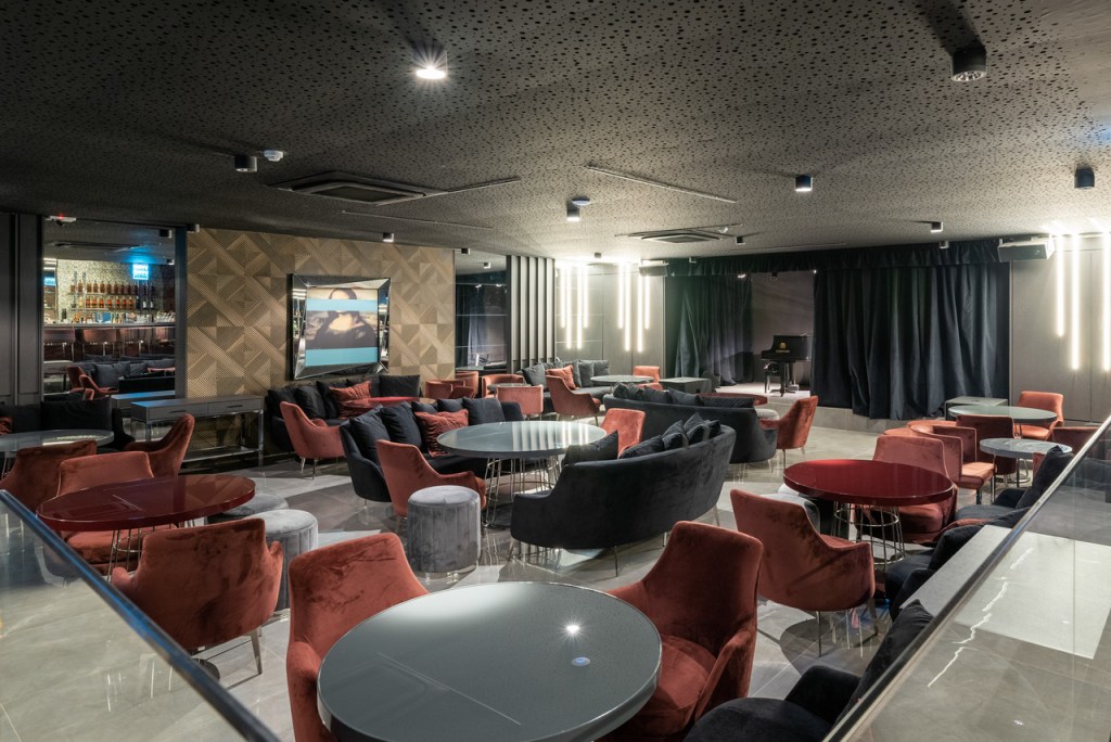 Com poltronas e sofás convidativos e um sofisticado ambiente, ele tem o palco próximo do público e proporciona uma exclusiva interação com os artistas, ainda mais por ser um ambiente idealizado para oitenta pessoas. Considerando a parte elevada do charmoso bar com parede de madre pérolas, sua capacidade chega a 100 lugares. O projeto é do arquiteto Eduardo Mourão.