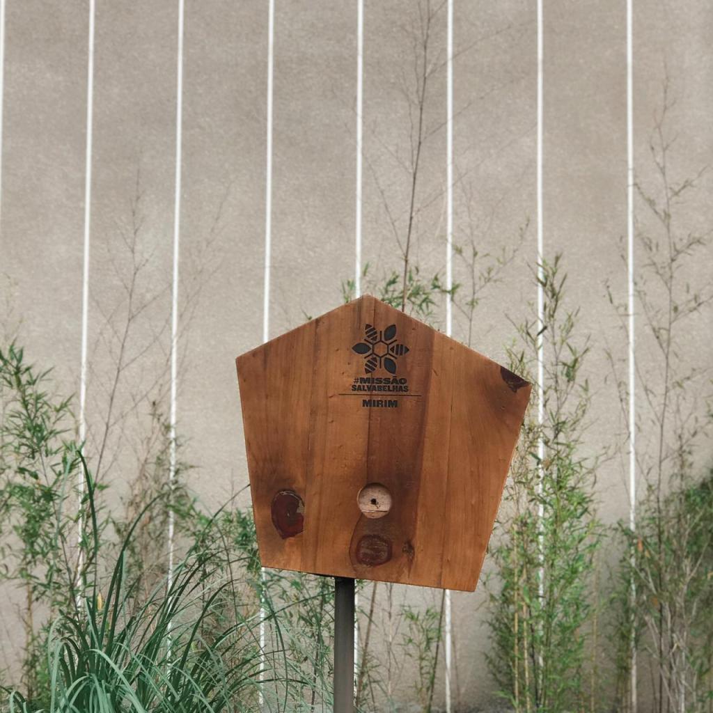 No jardim do Jockey Plaza Shopping, próximo à saída C, foram instaladas quatro caixas de criação com o objetivo de aumentar a população das abelhas nativas.