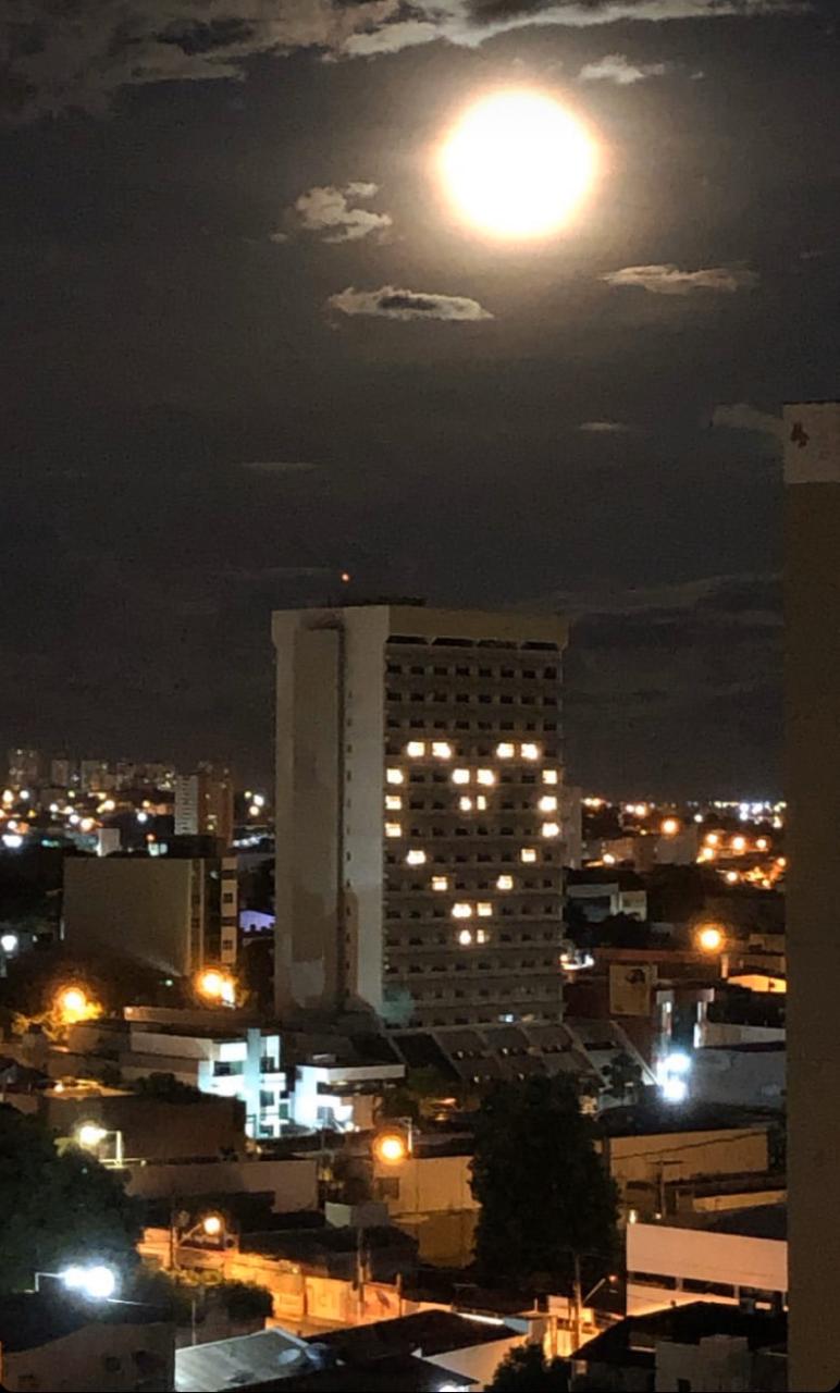 Mesmo fechada, a unidade de Cuiabá aproveitou para transmitir conforto e bem-estar aos cuiabanos. Acendendo as luzes de alguns quartos, a fachada forma um coração iluminado no centro da cidade, como mostram as fotos. Para completar a demonstração de amor, a lua cheia deu um toque ainda mais emocionante na noite iluminada.