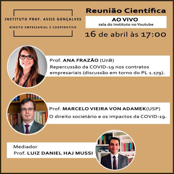 Temas relevantes de Direito Empresarial em tempos de COVID-19 serão discutidos durante reunião científica do Instituto Prof. Assis Gonçalves de Direito Empresarial e Cooperativo.