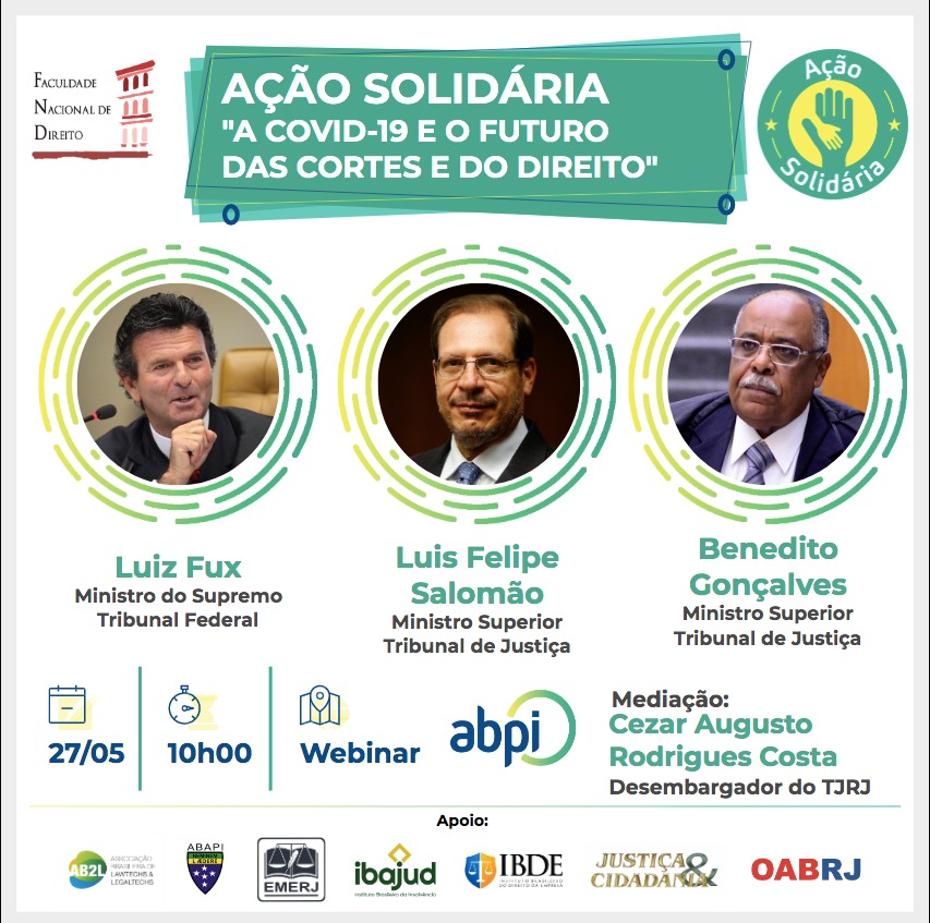 A Covid-19 e o futuro das cortes e do Direito é o tema da palestra online, organizada pela Associação Brasileira de Propriedade Intelectual e a Faculdade Nacional de Direito da UFRJ.