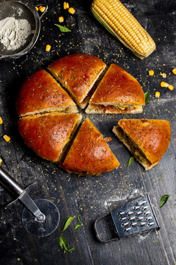 Dentro do pão pizza tem 300 gramas de hambúrguer artesanal de costela e os acompanhamentos.