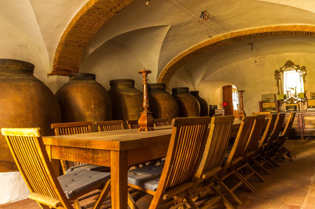 A retirada do vinho de dentro da talha também é parte importante do método: uma torneira posicionada na parte de baixo do recipiente permite não apenas que o líquido seja passado para as garrafas, mas que ele seja filtrado pelo bagaço que estava no fundo, formado pelas películas, sementes e outras partes sólidas da uva.