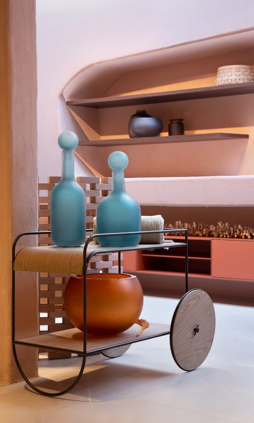 Destaques no mobiliário: carrinho de chá Semai em acabamento louro mate.