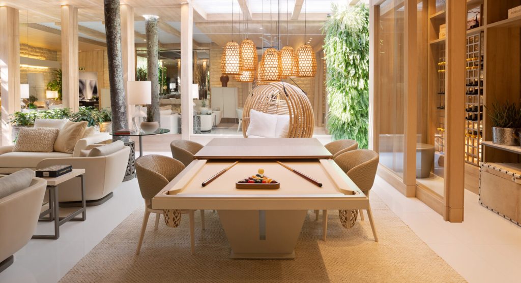 Destaques no mobiliário: O balanço Apuí, assinado por Sérgio Mattos, e a mesa La La Land, que traz duas opções de uso em uma só peça, abraçando a diversão com a funcionalidade.