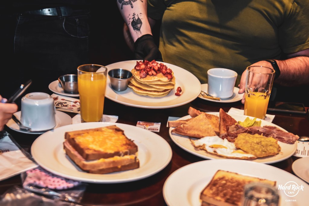 Neste domingo (28) acontece mais uma edição do American Breakfast no Hard Rock Cafe Curitiba, um legítimo café da manhã no estilo norte-americano, das 9h às 13h, com opções individuais (R$ 59), para duas pessoas (R$ 79,90) e para quatro pessoas (R$ 144,90).