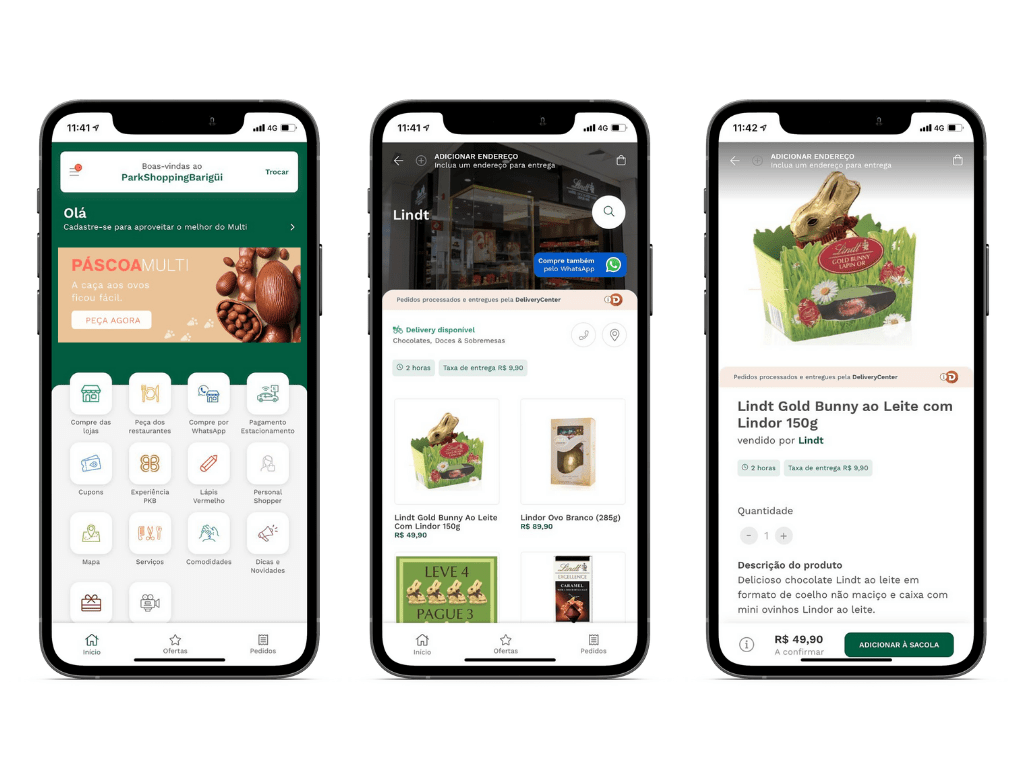 Para antecipar as ofertas, o PkB tem catálogo online no superapp Multi com todas as lojas de chocolates e opções de ovos, cestas, presentes e mimos para o cliente escolher com facilidade e garantia extras: todas as compras realizadas pelo superapp serão entregues em 24h.