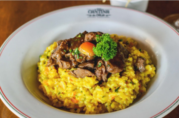 Cantina do Délio peça o prato Risoto Milanês com cubos de mignon. Pedidos pelo Ifood, no site, pelos contatos (41 9-8864-2838 – WhatsApp/ 41 3078-0010) e no local. Atendimento de segunda a sábado, das 11h às 15h e das 18h às 23h, e domingos das 11h às 16h. Rua Itupava, 1094.