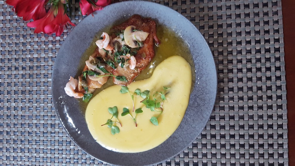 Como pratos principais, Saint Peter grelhado a belle meunière e musseline de batata salsa ou Escalope de mignon com ovo poché em vinho tinto, arroz, feijão e farofa ou como opção vegetarina, Espaguete alla putanesca. De sobremesa, Pudim de leite com calda de frutas vermelhas ou Brigadeiro de colher em verrine.