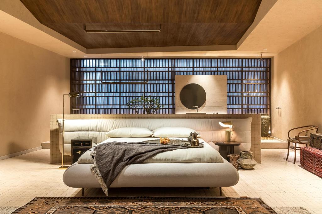 Quem se encantou com o mix de hotel de luxo e spa da Suíte Resort Reveev, do escritório Moca Arquitetura com a designer Flávia Gianert, pode levar para a casa a cama Ello, da Reveev, desenhada pelas profissionais para a Mostra. A peça exclusiva, em tecido especial Comoras Linen, que valia R$ 59.889,00, foi para R$ 41.992,30. O colchão Asti, que acompanha a cama, está com quase 50% de desconto, de R$ 24.496,00 por R$ 12.597,20.