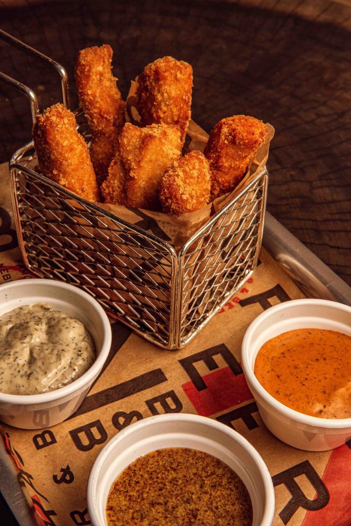 Entre as porções, as tradicionais Fries (R$12), o Cheese Pillows (R$25), que consiste em trouxinhas de queijo Gouda empanadas); as Hot Wings (R$27), que são coxinhas da asa empanadas, picantes, com molho tipo blue cheese e cenoura; e as Chicken Strips (R$27), com tiras de frango empanadas, acompanhadas de dois molhos: Ranch e Mostarda e Mel.
