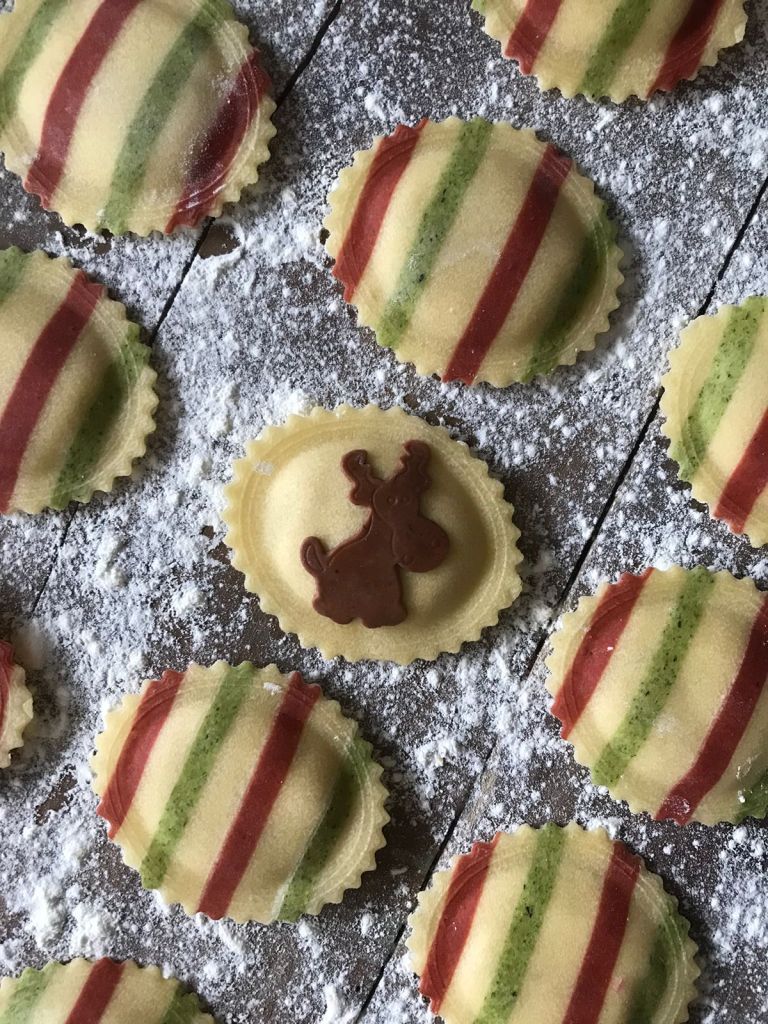 Dentre as massas recheadas, há três opções de Ravióli, todas pesando 370 gramas e estão à venda a partir de R$ 64. O Ravióli em formato de árvore de natal tem recheio de queijos nobres. Já a massa em formato de renas com recheio de peito de peru defumado e queijo ementhal. A massa com decoração natalina, possui recheio de ricota fresca e nozes.