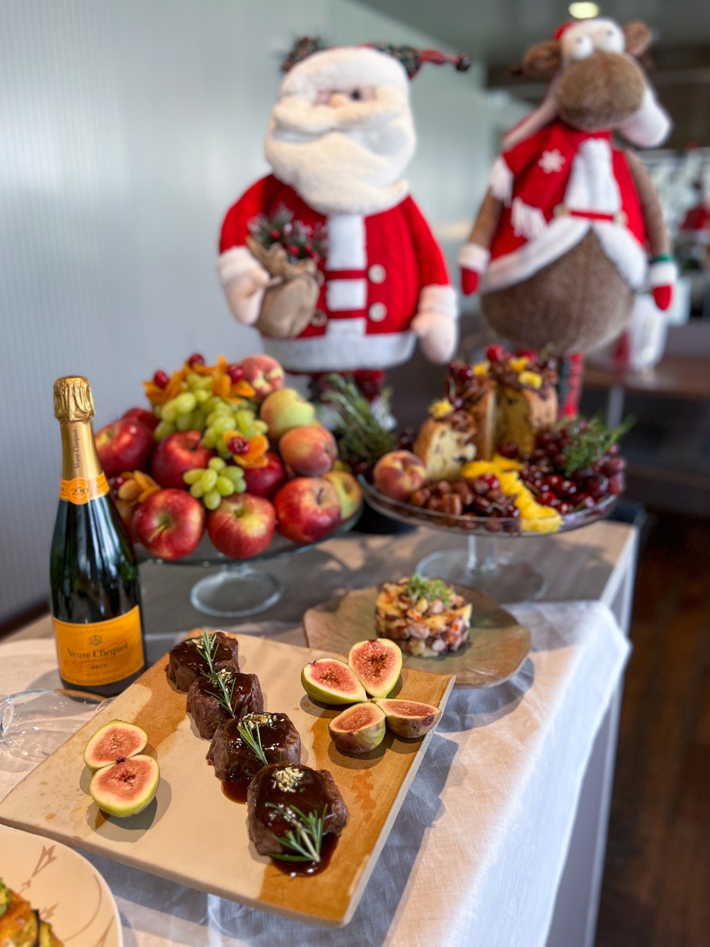 Entre os destaques do menu principal estão o peru com farofa natalina, o peixe branco em crosta com legumes tostados e a panceta suína com salada quente de espinafre, castanhas e frutas. A diversificada mesa de sobremesas inclui frutas, doces finos e regionais, s’mores e estação chocolate quente com frutas.