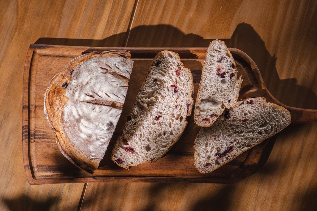 O cranberry agrega uma acidez ao pão, deixando o produto mais interessante ao paladar. Supermacio, o pão é ideal para comer com uma boa manteiga in natura ou na chapa – e fica perfeito acompanhado de um café, mas, se for utilizado para fazer uma tartine, a pedida é um vinho ou cerveja.