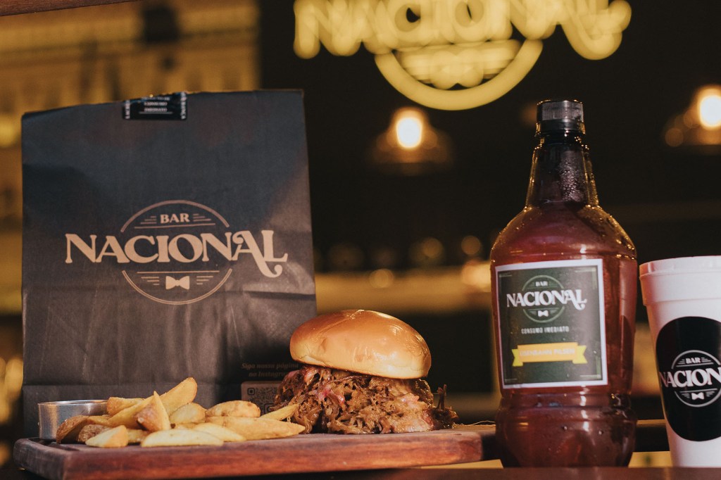 Embalagens especiais e muito cuidado fazem com que o público da casa possa aproveitar comidas e bebidas do Nacional como se estivessem no bar, como conta o chefe João Gabriel Nunes, um dos sócios. “Nossa ideia é reproduzir uma parte da experiência do bar na casa das pessoas. Para isso, selecionamos petiscos e lanches que representam bem a nossa gastronomia e mais nossos dois tipos de bebidas que estão entre os destaques do bar: chopes e caipirinhas”, explica. “Os chopes são tirados na hora e enviados em growlers PET, enquanto as caipirinhas vão em copos especiais com isopor. Todas nossas 26 opções de caipirinhas estão no delivery”.