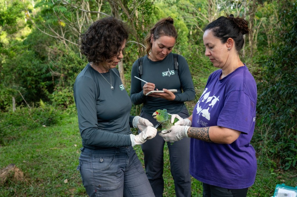 E foi por observar a gravidade do cenário da Mata Atlântica, tanto no planalto, quanto em regiões de planície, que a SPVS iniciou um trabalho de conservação de fauna, na década de 1990, com apoio de inúmeros parceiros. As primeiras ações de conservação voltadas a espécies de papagaios ocorreram no litoral, com o papagaio-de-cara-roxa. A partir desta experiência, pouco depois, em 2005, foi possível expandir as ações também para o papagaio-de-peito-roxo em áreas de Floresta com Araucária no estado do Paraná.