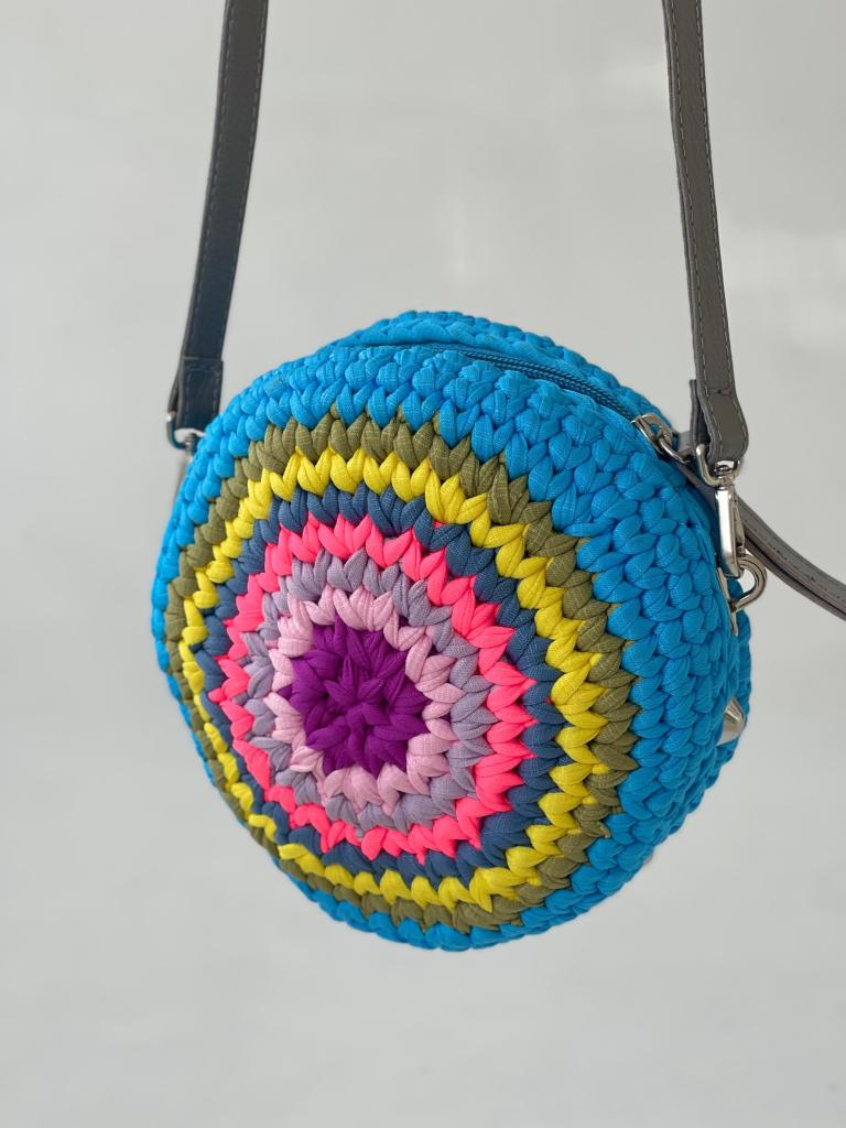 Peças exclusivas criadas por Suzanna Becker e Elyane Fiuza, feitas com resíduos de fios de malha e ráfia.