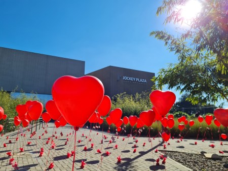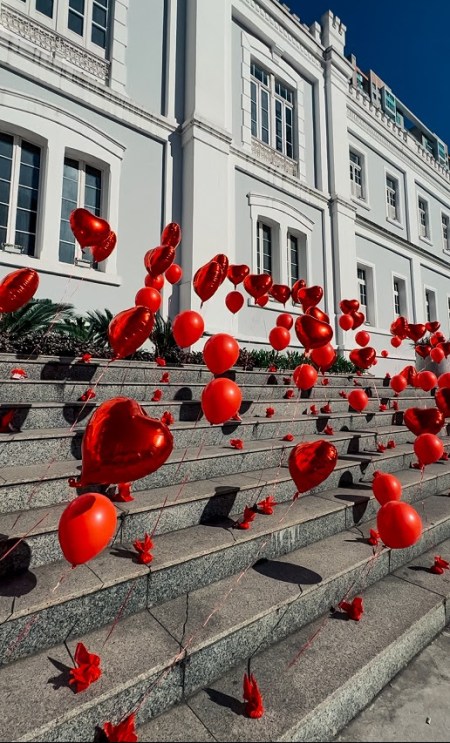 São cerca de mil balões em formato de coração nos jardins em frete ao shopping