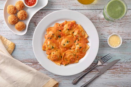 São três tipos de massas: Zuca (abóbora), Queijo (mussarela de búfala com manjericão) e Carne com cebola caramelizada