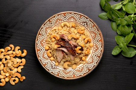 No cardápio, arroz com grão de bico, castanha de caju, pernil de cordeiro e especiarias
