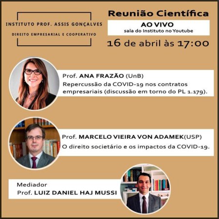 Encontro será transmitido ao vivo pelo canal Youtube, nesta quinta-feira, 16 de abril, a partir das 17h, na sala do Instituto